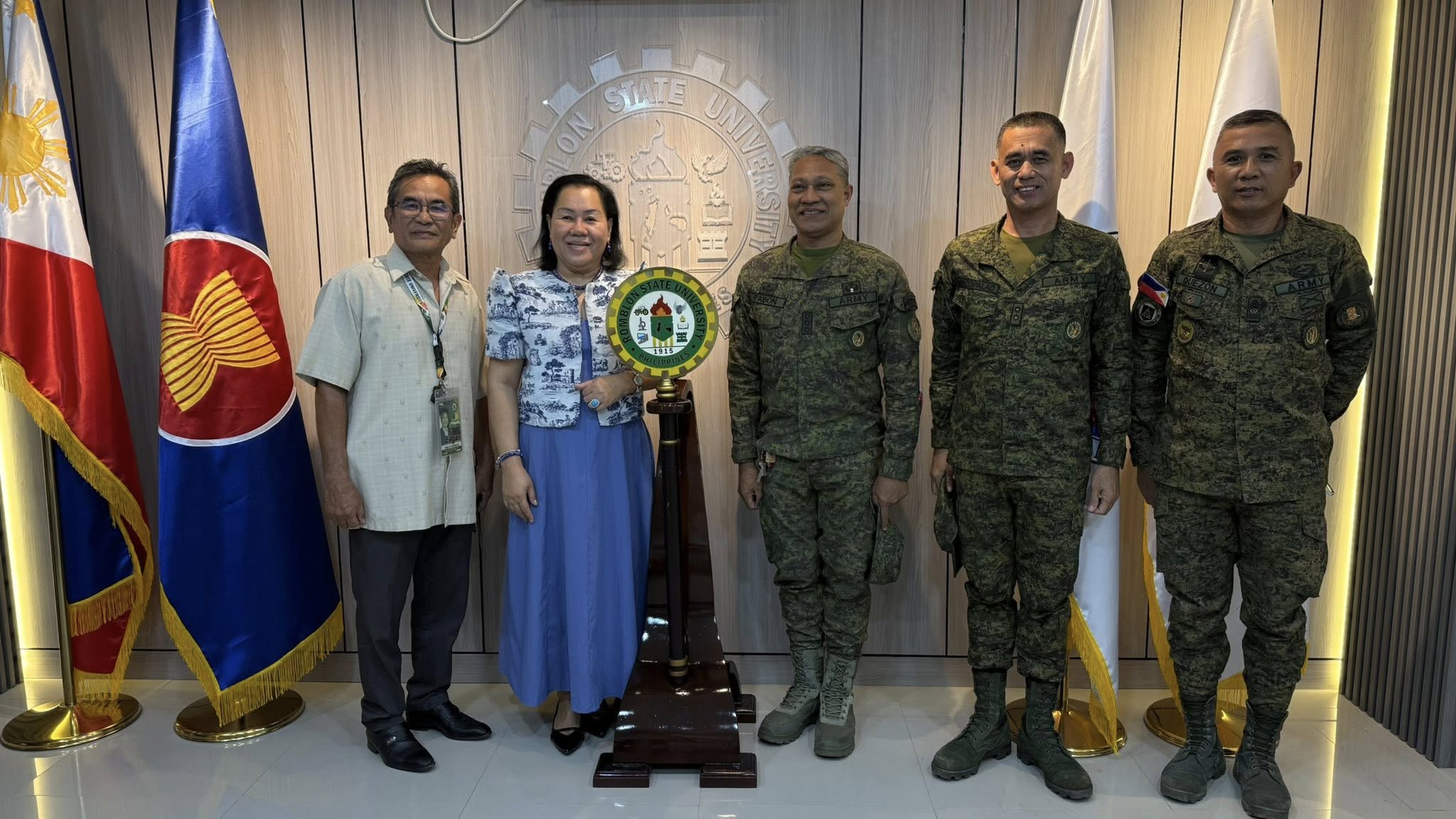 A delegation from the Philippine Army’s 17th Regional Community Defense Group (17RCDG), and Reserve Command (RESCOM), conducted a courtesy visit to President Dr. Merian P. Catajay-Mani in her office.