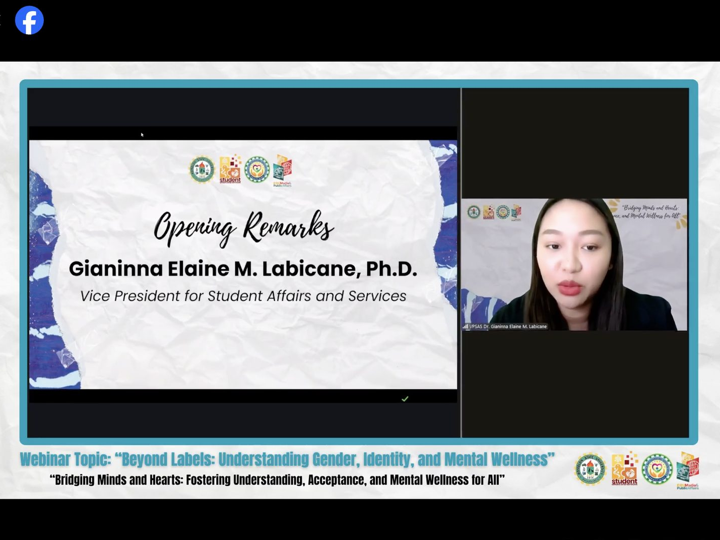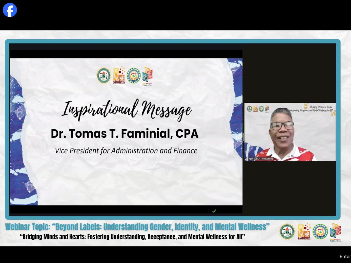 Guided by the theme โ€œ๐˜‰๐˜ณ๐˜ช๐˜ฅ๐˜จ๐˜ช๐˜ฏ๐˜จ ๐˜”๐˜ช๐˜ฏ๐˜ฅ๐˜ด ๐˜ข๐˜ฏ๐˜ฅ ๐˜๐˜ฆ๐˜ข๐˜ณ๐˜ต๐˜ด: ๐˜๐˜ฐ๐˜ด๐˜ต๐˜ฆ๐˜ณ๐˜ช๐˜ฏ๐˜จ ๐˜œ๐˜ฏ๐˜ฅ๐˜ฆ๐˜ณ๐˜ด๐˜ต๐˜ข๐˜ฏ๐˜ฅ๐˜ช๐˜ฏ๐˜จ, ๐˜ˆ๐˜ค๐˜ค๐˜ฆ๐˜ฑ๐˜ต๐˜ข๐˜ฏ๐˜ค๐˜ฆ, ๐˜ข๐˜ฏ๐˜ฅ ๐˜”๐˜ฆ๐˜ฏ๐˜ต๐˜ข๐˜ญ ๐˜ž๐˜ฆ๐˜ญ๐˜ญ๐˜ฏ๐˜ฆ๐˜ด๐˜ด ๐˜ง๐˜ฐ๐˜ณ ๐˜ˆ๐˜ญ๐˜ญโ€, the Romblon State University-Guidance and Counseling Services Office (GCSO) in collaboration with RSU Office of Media & Public Affairs successfully spearheaded a university-wide webinar titled โ€œ๐—•๐—ฒ๐˜†๐—ผ๐—ป๐—ฑ ๐—Ÿ๐—ฎ๐—ฏ๐—ฒ๐—น๐˜€: ๐—จ๐—ป๐—ฑ๐—ฒ๐—ฟ๐˜€๐˜๐—ฎ๐—ป๐—ฑ๐—ถ๐—ป๐—ด ๐—š๐—ฒ๐—ป๐—ฑ๐—ฒ๐—ฟ, ๐—œ๐—ฑ๐—ฒ๐—ป๐˜๐—ถ๐˜๐˜†, ๐—ฎ๐—ป๐—ฑ ๐— ๐—ฒ๐—ป๐˜๐—ฎ๐—น ๐—ช๐—ฒ๐—น๐—น๐—ป๐—ฒ๐˜€๐˜€โ€.